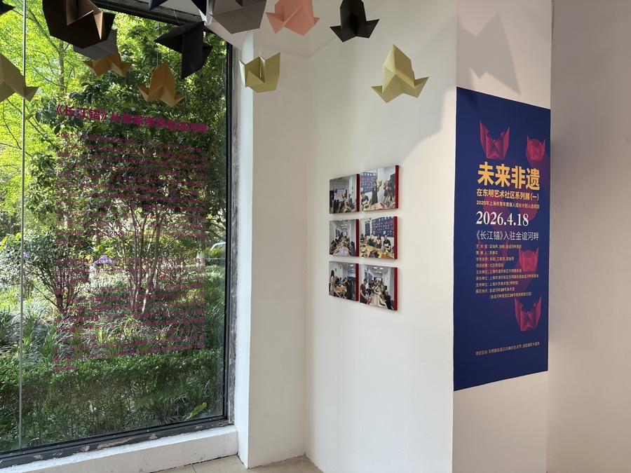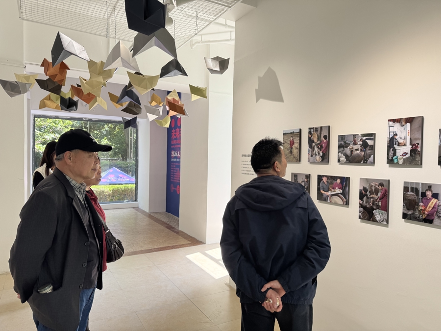 展览中由苏光禧、张龙、张俊、金大建、郭甫强、徐子良六位摄影师创作的“海上・非遗”摄影六组作品,聚焦上海本土国家级、市级非遗项目,用镜头记录技艺瞬间、讲述传承故事。作品涵盖宝山鮰鱼烹饪技艺、崇明老白酒制作工艺、顾绣、南翔小笼、金山农民画、上海鲁庵印泥制作技艺,以情景再现手法突破传统纪实,还原非遗背后的人文温度与匠心坚守。展厅特别设置VR沉浸式体验区,观众可身临其境地观看宝山鮰鱼烹饪、南翔小笼制作全过程,以科技视角感受非遗细节之美。同步亮相的《长江锚》作为标志性共建艺术项目,源自2021年张家港美术馆“未来非遗”展,历经中华艺术宫、新场古镇巡展后,正式落地金谊河畔。本次作品由当代折纸艺术家梁海声团队、徐敏与社区居民共同完成,成为金谊河畔28号美术馆的核心展品。